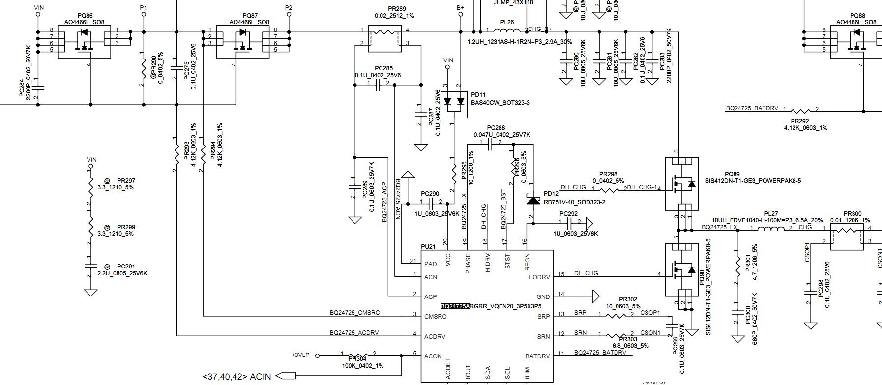 这二个管子是 N 管,G 极都接在一起的,受 BQ25A 4 脚 ACDRV 驱动。这种新的芯片大家都知道就不细说了。
