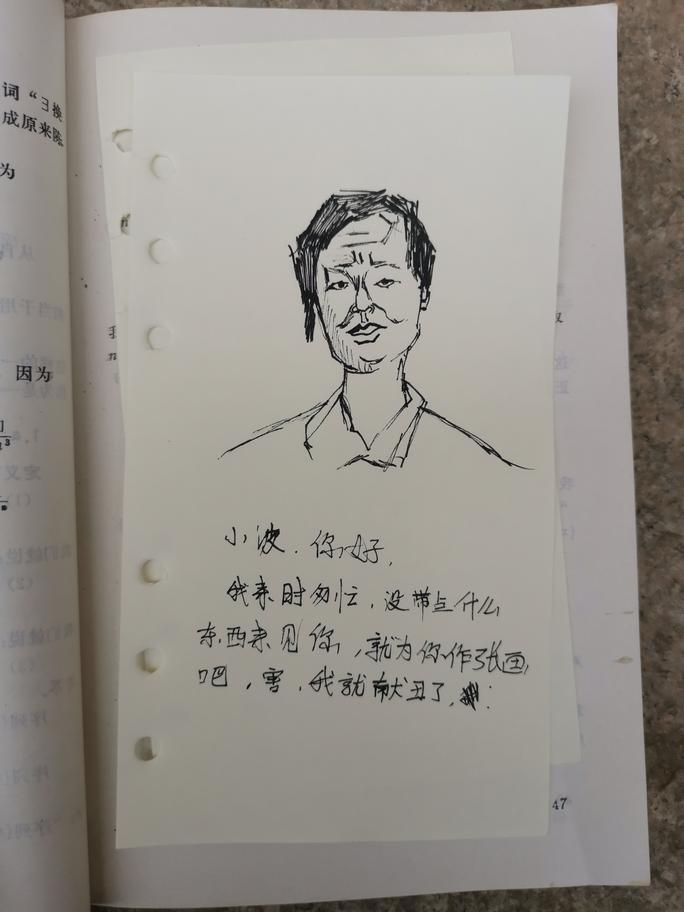 北京乃是英灵所钟,其实到颐和园几次,都想去拜谒耶律楚材,不过此举都不免会和同行亲朋有辕辙之别,遂均抑之。况且到颐和园,怎么说也还有个入门的“人事”须投名,那就去个勿需破费的地方吧。约了兜妈,直奔阳坊,去小山顶上,看望小波。时值一个工作日,又是清明过后,来人极为稀少,甫入陵园之始,纵目四望,除工作人员外,也就我们俩。在高高低低大大小小的墓碑之间穿梭,看着上面的“先考”、“先妣”、“慈父”、“慈母”、“爱夫”、“爱子”,山风徐来,林梢轻应,在耳边翕乎有声,如低泣,如轻咽,如款诉,令人不胜唏嘘,何书记言道:“人间万象,至此归一”。小波的书,我并未深读熟读,但他的文字给予我的意象,较诸年轻时在他之前的梁晓声和余秋雨,似乎要深一些,既有陈清扬,也有薛嵩。站在那儿,兜妈帮我摄了个影。权作墓窟兼及墓碑的那块大石前,有两大束花,一束已然凋敝有时,另一束显见得是不久前才放置此处的。有几个酒瓶子,几个烟盒子,竟然还有一套《数学分析新讲》的三部头。书中夹有来人对小波的一幅速写,其下有文:“小波,你好。我来时匆忙,没带点什么东西来见你,就为你作张画吧。害,我就献丑了。”另有一封信,虽未封口,但恐属私语,未以展读。大石所对,视野极好,景色也佳,开阔而大气,李银河好眼力。